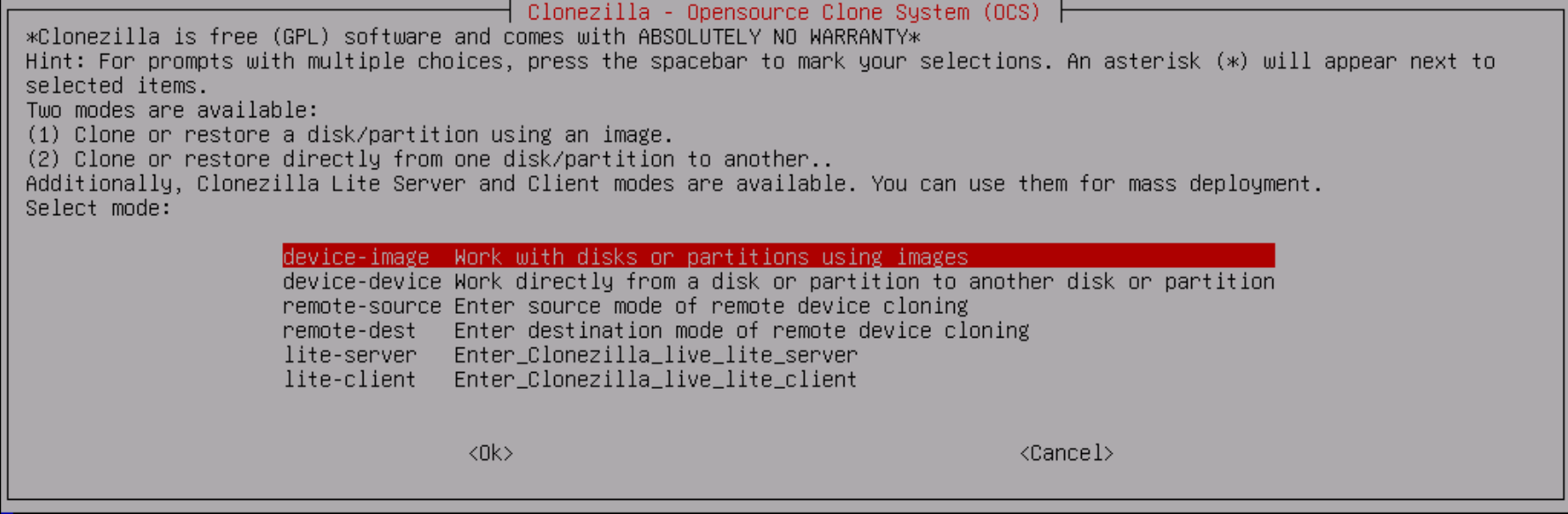 5 Uso básico de Clonezilla